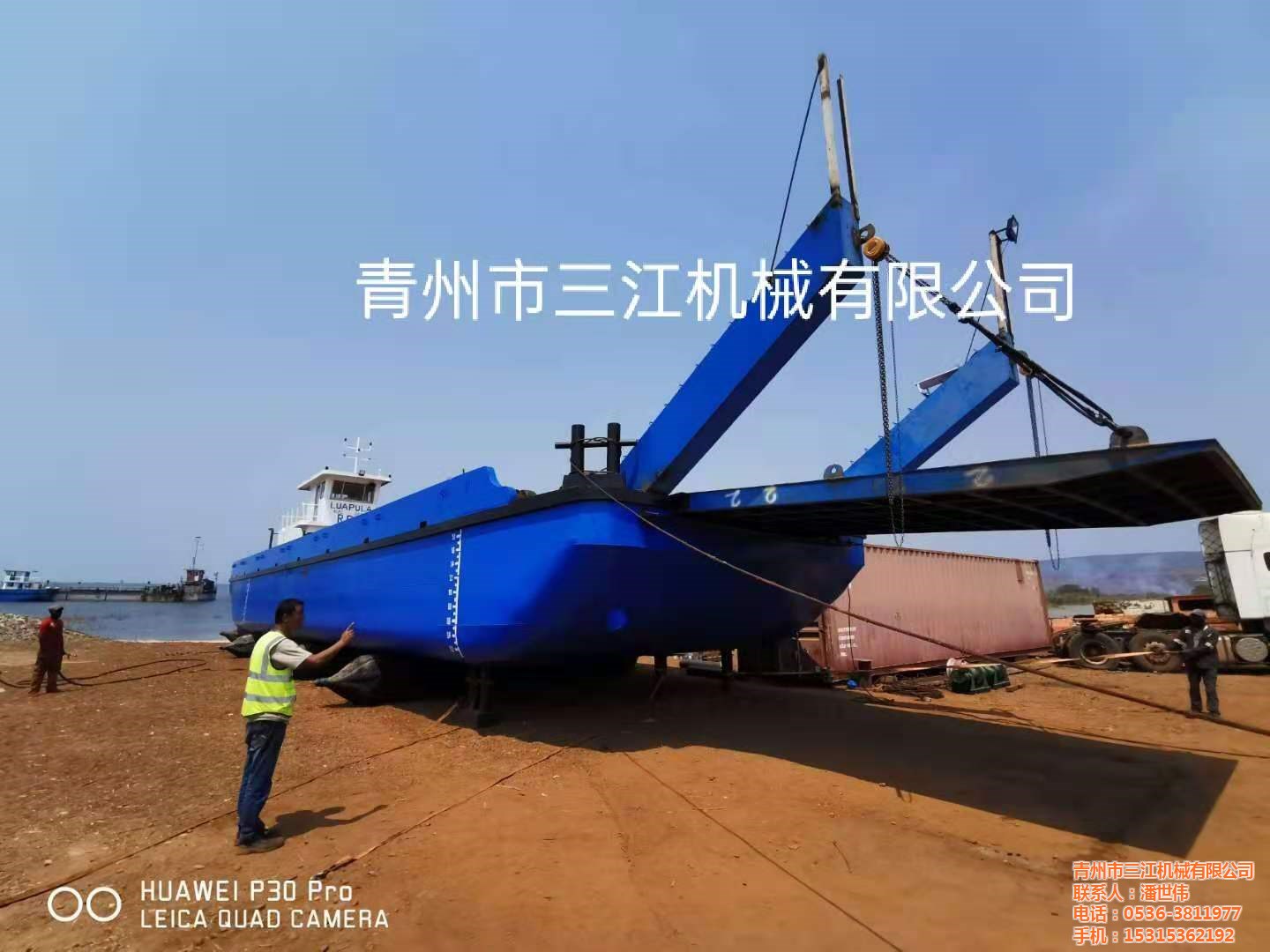 非洲剛果金客戶定做的兩臺(tái)200噸礦石運(yùn)輸甲板駁一次試車(chē)成功,交付使用。