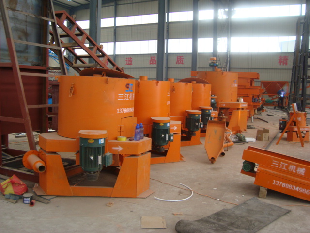 本設(shè)備是代替汞板的沙金富集設(shè)備,處理量為10-12T/h,配用動力7.5kw6極電動機一臺,外筒直徑1.1米,設(shè)備總高1.58米,給礦粒度0.4-0.6mm,給礦濃度為30%,凈選率在90%以上,設(shè)備總重約1000kg.