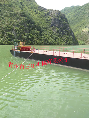 本設(shè)備為自航鋼質(zhì)分體式平板駁,分體后可用兩臺半掛車公路運(yùn)輸,運(yùn)達(dá)目的地后經(jīng)過快速組裝后形成作業(yè)能力。也可以公路運(yùn)輸至港口,裝入散貨船長途海運(yùn)至非洲、東南亞等##,組裝使用。本設(shè)備滿載吃水深度1.15米,適用于內(nèi)陸河道特別是淺水域的砂石、雜貨運(yùn)輸,也可