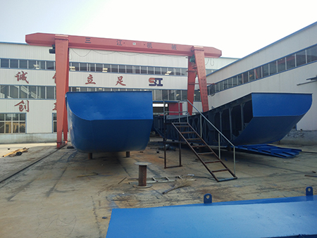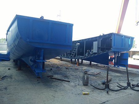 發(fā)往斐濟(jì)共和國(guó)的制造中的100噸近海甲板駁船。濰柴船用機(jī)、杭齒變速箱、ccs級(jí)